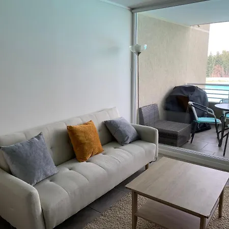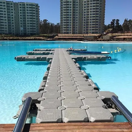 Departamento Con Laguna Artificial En Las Cruces ferielejlighed er et 2 værelses overnatningsted med en gratis privat parkeringsplads, en gårdhave og en privat pool. Gæsterne kan besøge Humedal El Peral, 2,9 km derfra eller Playa Grande Las Cruces, 1,5 km fra indkvarteringen.